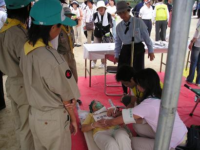 | 応急救護所 | 救護支援を行なうスカウト |