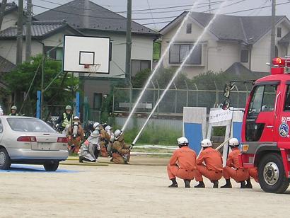 | 倒壊家屋からの救出訓練 | 消防職・団員による消火訓練 |