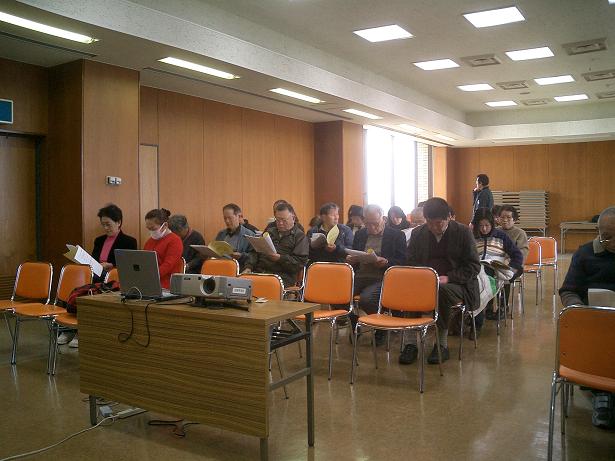 2月28日に九十九里町社会福祉協議会において、地域ボランティアを対象にした研修会が開催されました。 前半はパワーポイントによる概要説明で後半は模擬訓練を行いました。 参加者の皆さんは大変関心を持って頂き、積極的に参加して頂きました。