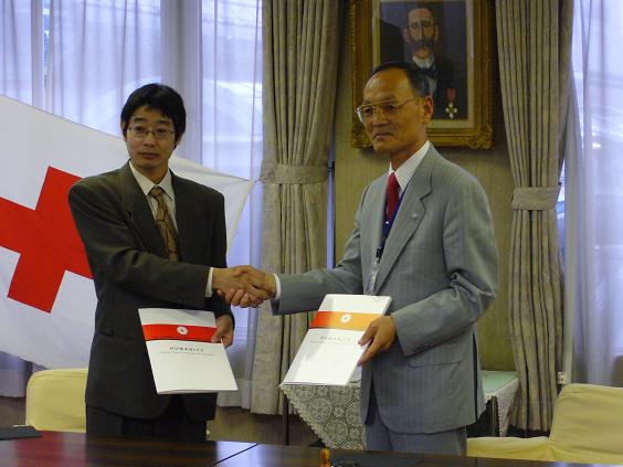 | 協定締結 (右:菅谷日赤千葉事務局長 左:丸山千葉RB理事長) |
