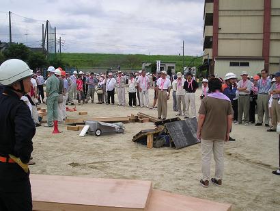 | 倒壊家屋からの救出訓練 | 消防職・団員による消火訓練 |